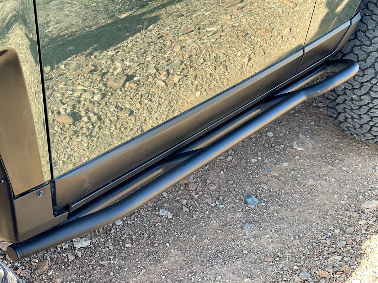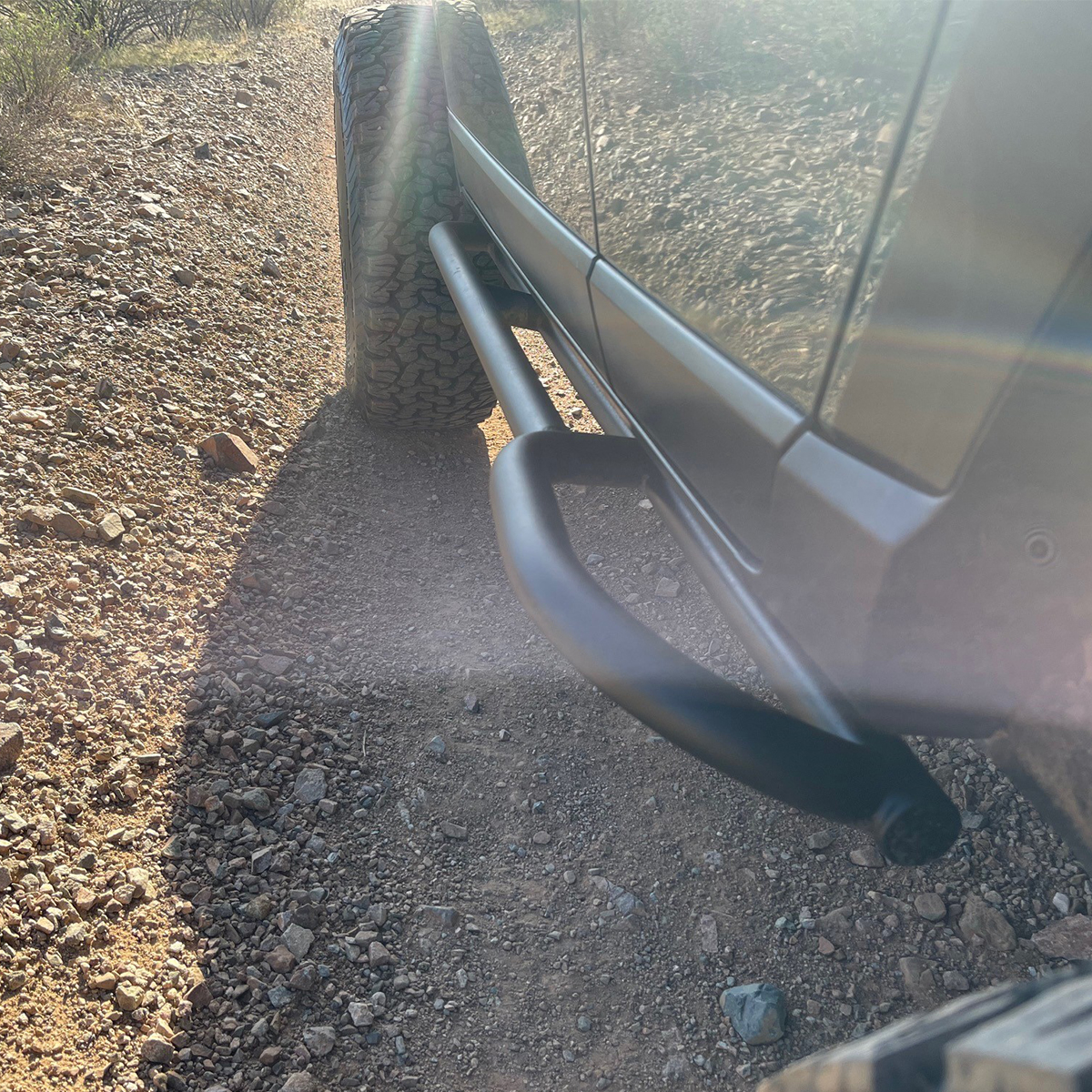 Westcott Designs rock sliders for FJ Cruiser. Our sliders are laser cut, hand built, and hand welded which make them some of the best on the market. Our sliders are all .120 wall tubing and offered in both *HREW and *DOM steel, in either MIG or TIG welded options. The frame plates are also laser cut out of .188 *HRPO steel and feature a true bolt on install with supplied hardware. No matter what variation you select our sliders in, they will offer you excellent protection. For ultimate protection when out on the trails, our DOM tubing option will provide you with the most robust impact resistance along with the confidence of the longest lasting and highest quality materials. We have different options for angle of approach (0 degree & 20 degree), with or without top plates and a durable BK08 black powder coat finish. We primer coat all our sliders first to prevent corrosion from forming no matter what the weather conditions they are put through.