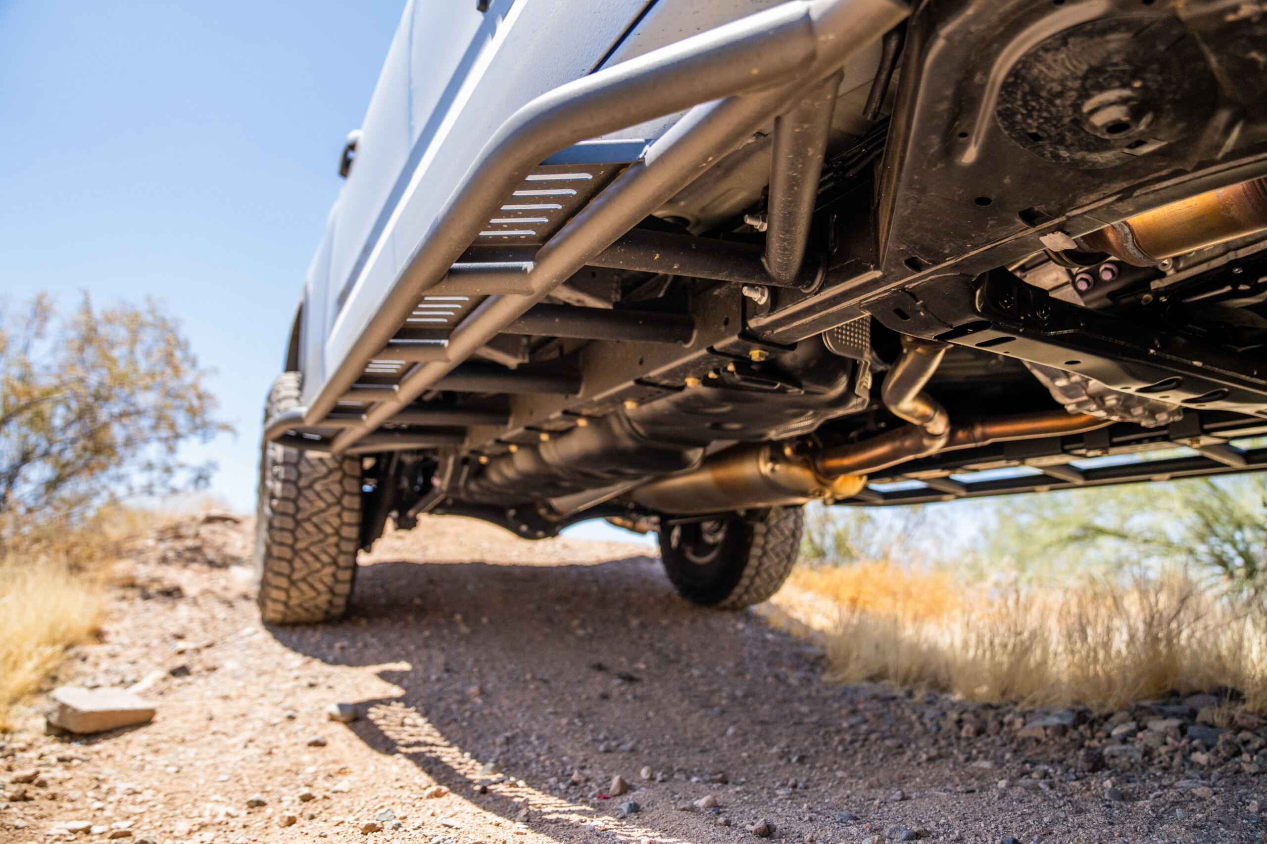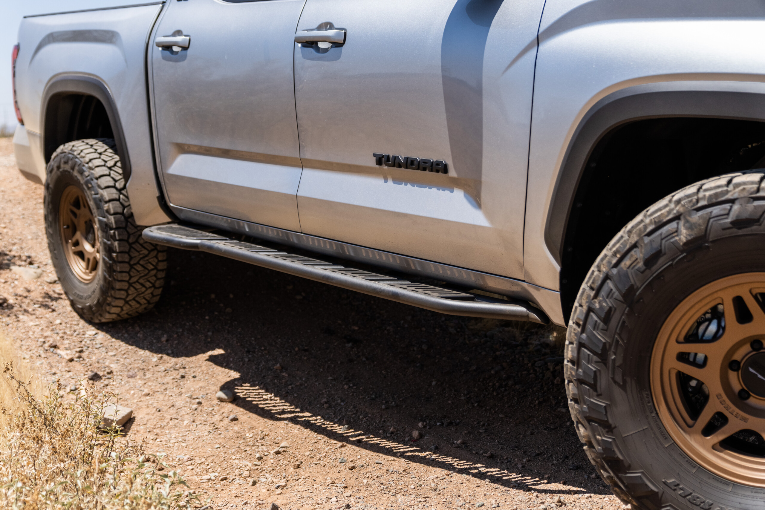 Westcott Designs rock sliders (With Kickout) for the 2022-2026 Toyota Tundra. Our sliders are laser cut, hand built, and hand welded which make them some of the best on the market. Our new Tundra sliders feature a .188 wall main tube along with .120 wall outer tubes for increased reinforcement and exact tolerances in *DOM steel, in either MIG or TIG welded options. The frame plates and tube gussets are also laser cut out of .188 *HRPO steel and feature a true bolt on install with supplied hardware. No matter what variation you select our sliders in, they will offer you excellent protection. DOM tubing will give you the ultimate protection when out on the trails and will provide you with the most robust impact resistance along with the confidence of the longest lasting and highest quality materials. We have different options for angle of approach (0 degree & 20 degree), with or without top plates and a durable BK59 black powder coat finish. *By selecting if you have a Hybrid or Non-Hybrid model this ensures that we ship your new sliders with the correct mounting hardware. **Does NOT fit double cab OR long bed models**