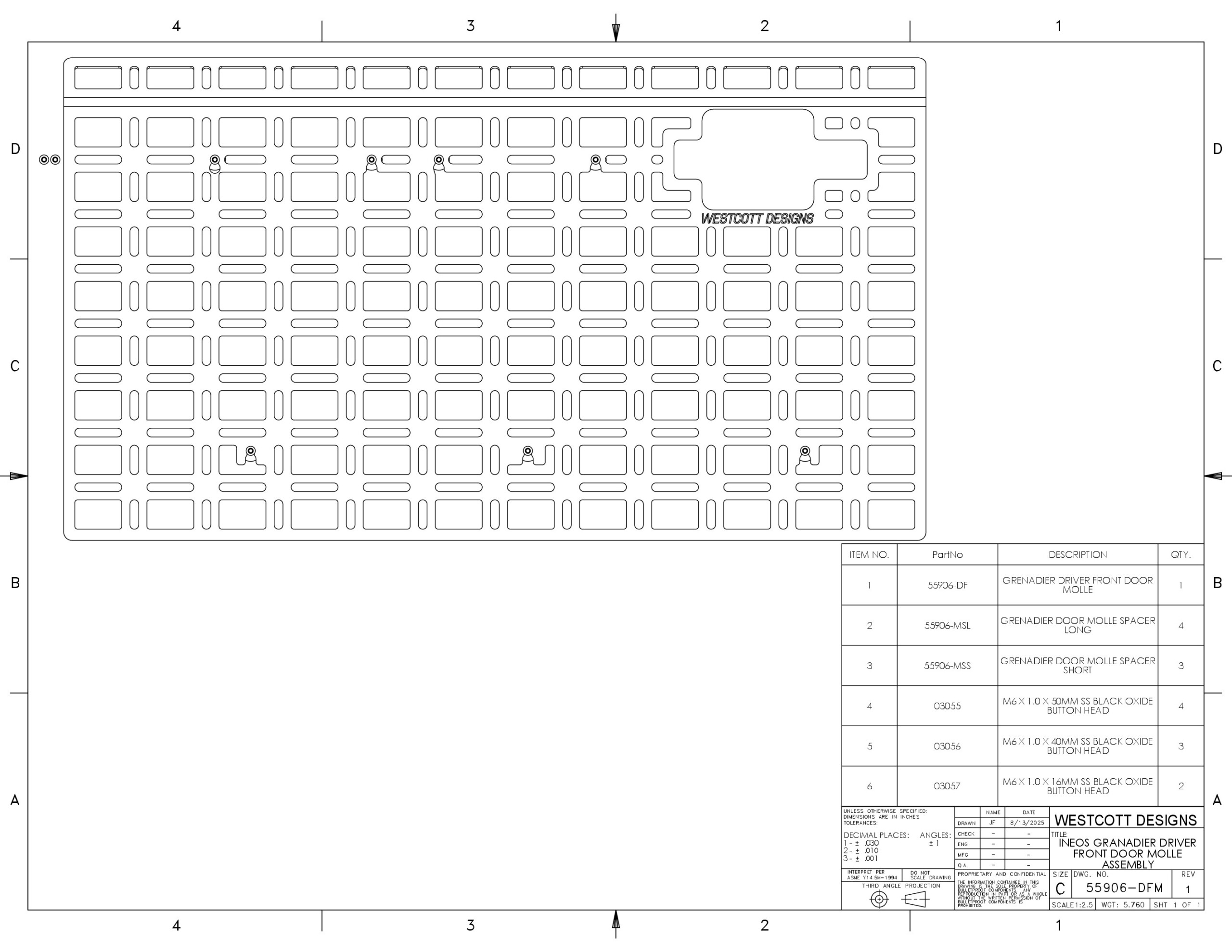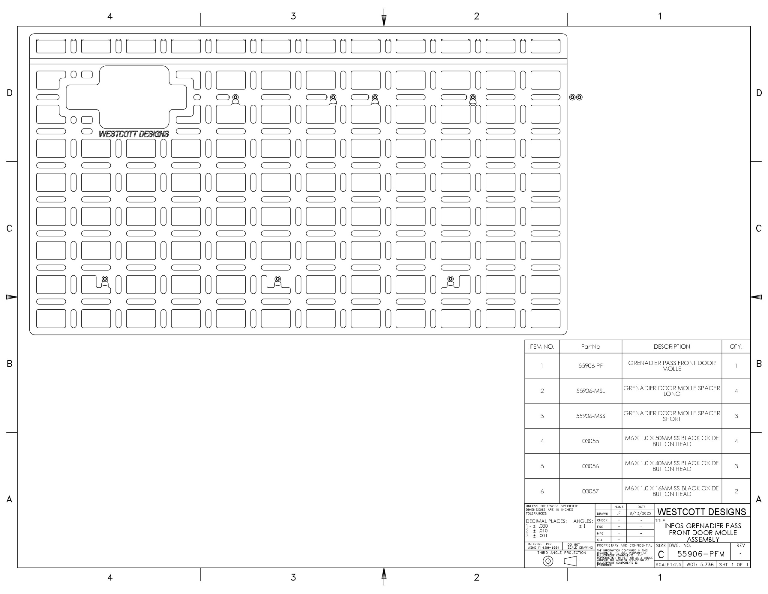 Check out the Westcott Designs Front Door Molle Panels for the 2024-2026 (1st Generation) INEOS Grenadier! Laser cut and powder coated for a strong durable finish attached to the INEOS Grenadier, it looks like it is a perfect match for this utility vehicle.  With the Westcott Designs molle panels, you’ll be able to mount various accessories and attachments to the side of your Grenadier for all the many adventures ahead of you!