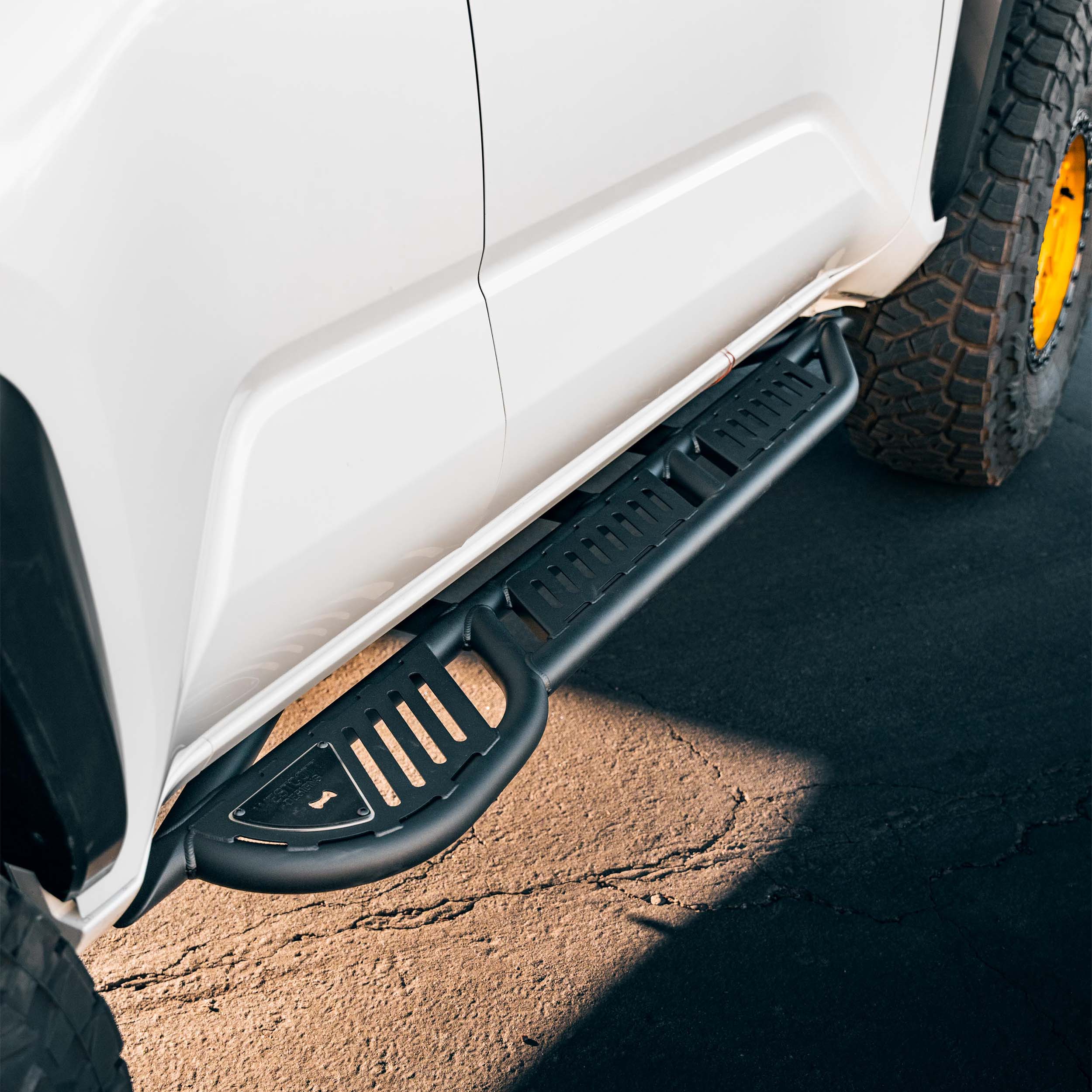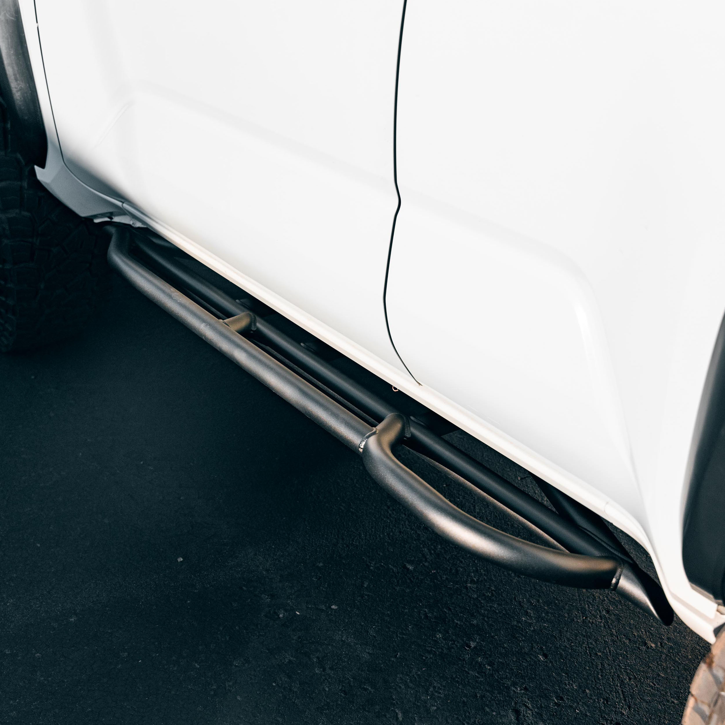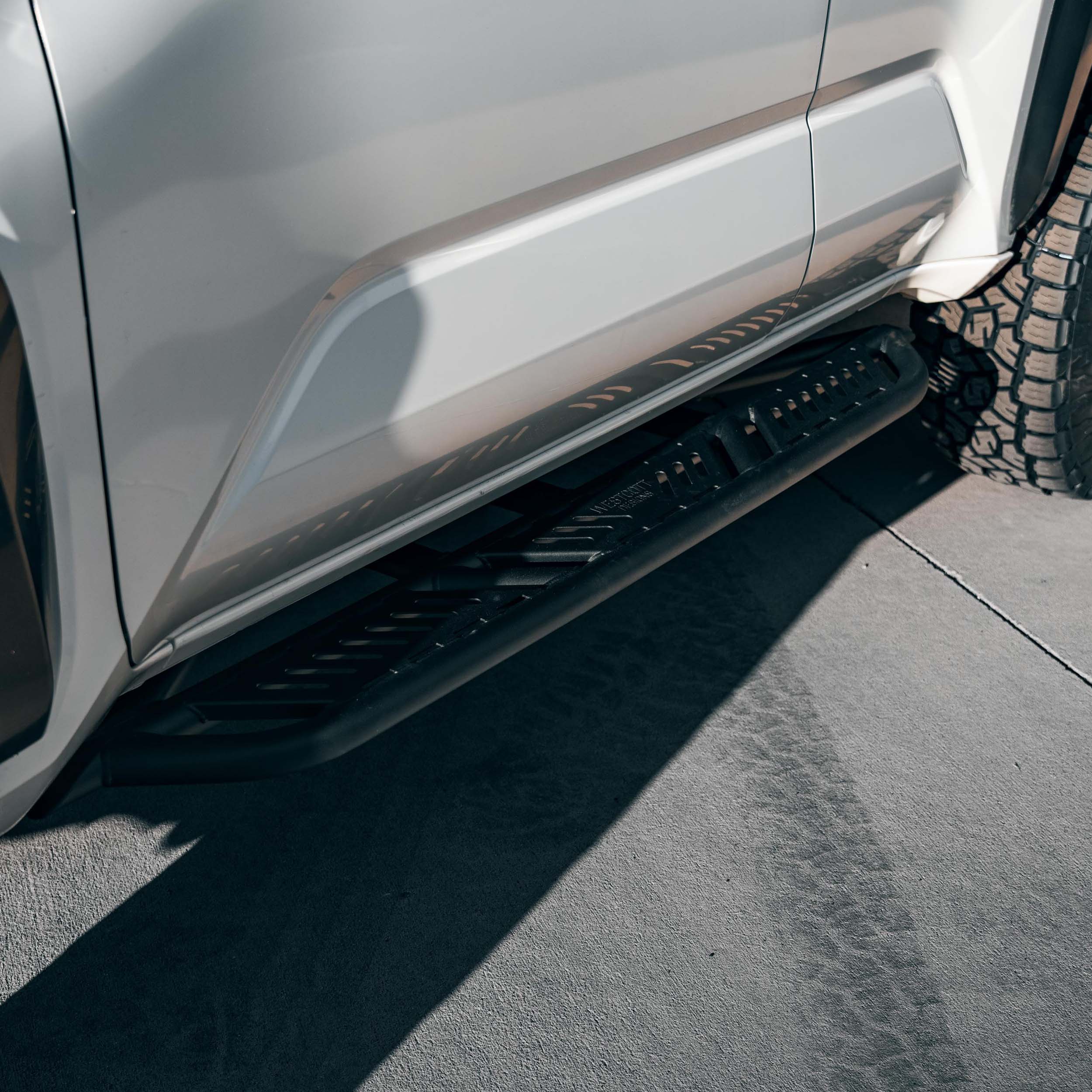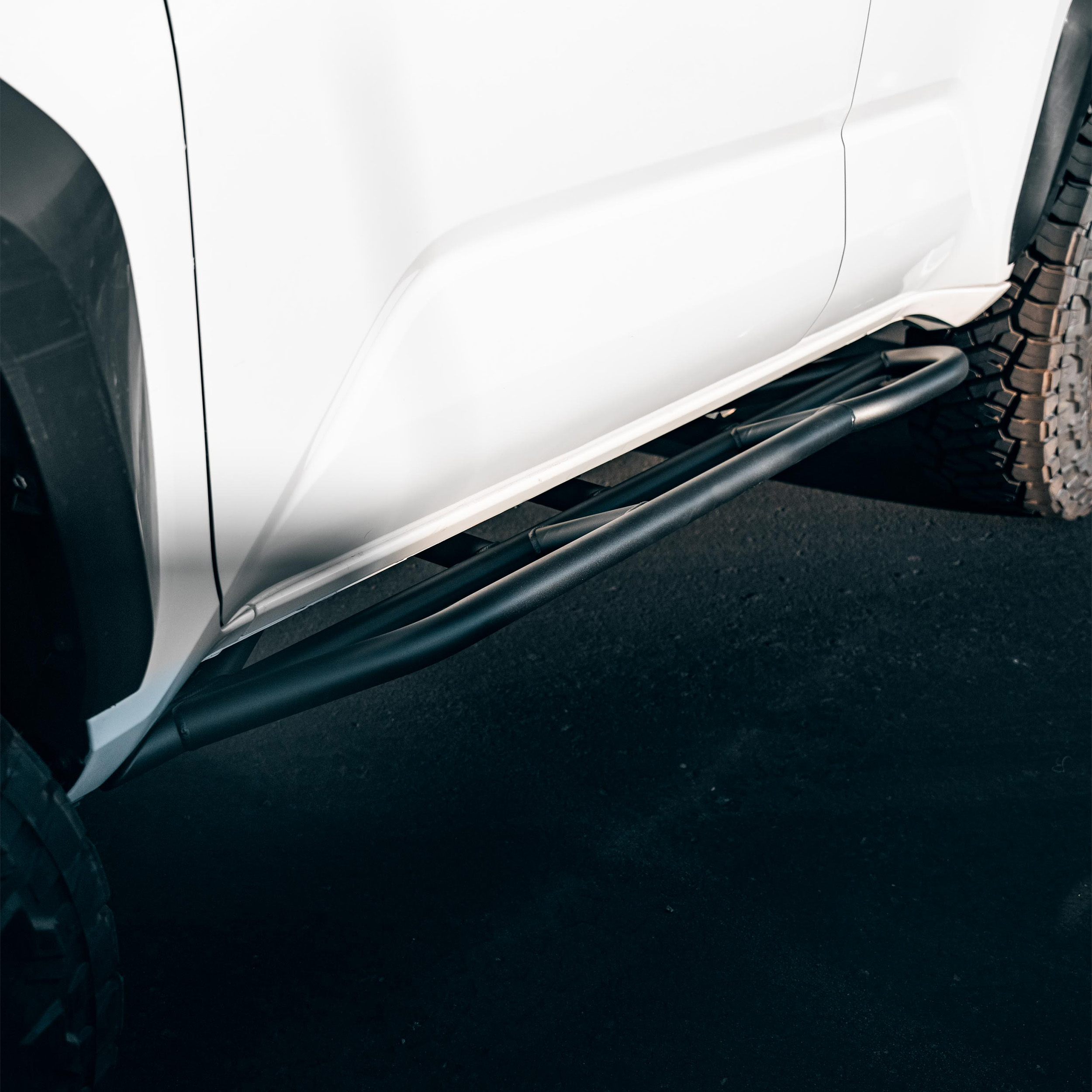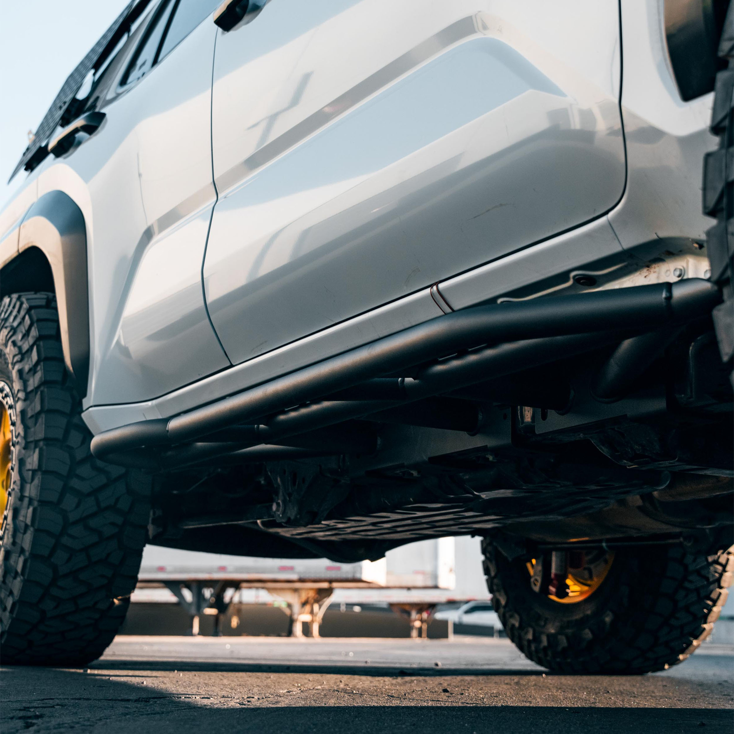 Westcott Designs rock sliders for the ALL-NEW 2025+ Toyota 4runner 6th generation. Our sliders are laser cut, hand built, and hand welded which make them some of the best on the market. Our sliders are all .120 wall tubing and offered in both *HREW and *DOM steel, in either MIG or TIG welded options. The frame plates are also laser cut out of .188 *HRPO steel and feature a true bolt on install with supplied hardware. Compatible with both non KDSS & KDSS equipped vehicles. No matter what variation you select our sliders in, they will offer you excellent protection no matter what kind of abuse you put them through and will last for years to come. We have different options for angle of approach (0 degree & 20 degree), with or without top plates and a durable BK59 black powder coat finish. We primer coat all our sliders first to prevent corrosion from forming no matter what the weather conditions they are put through. (Will NOT fit 2021 Limited or Nightshade models with Xreas)