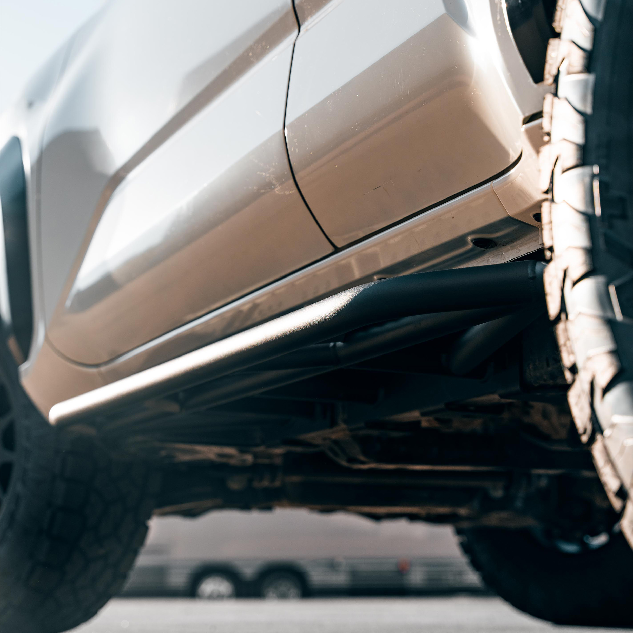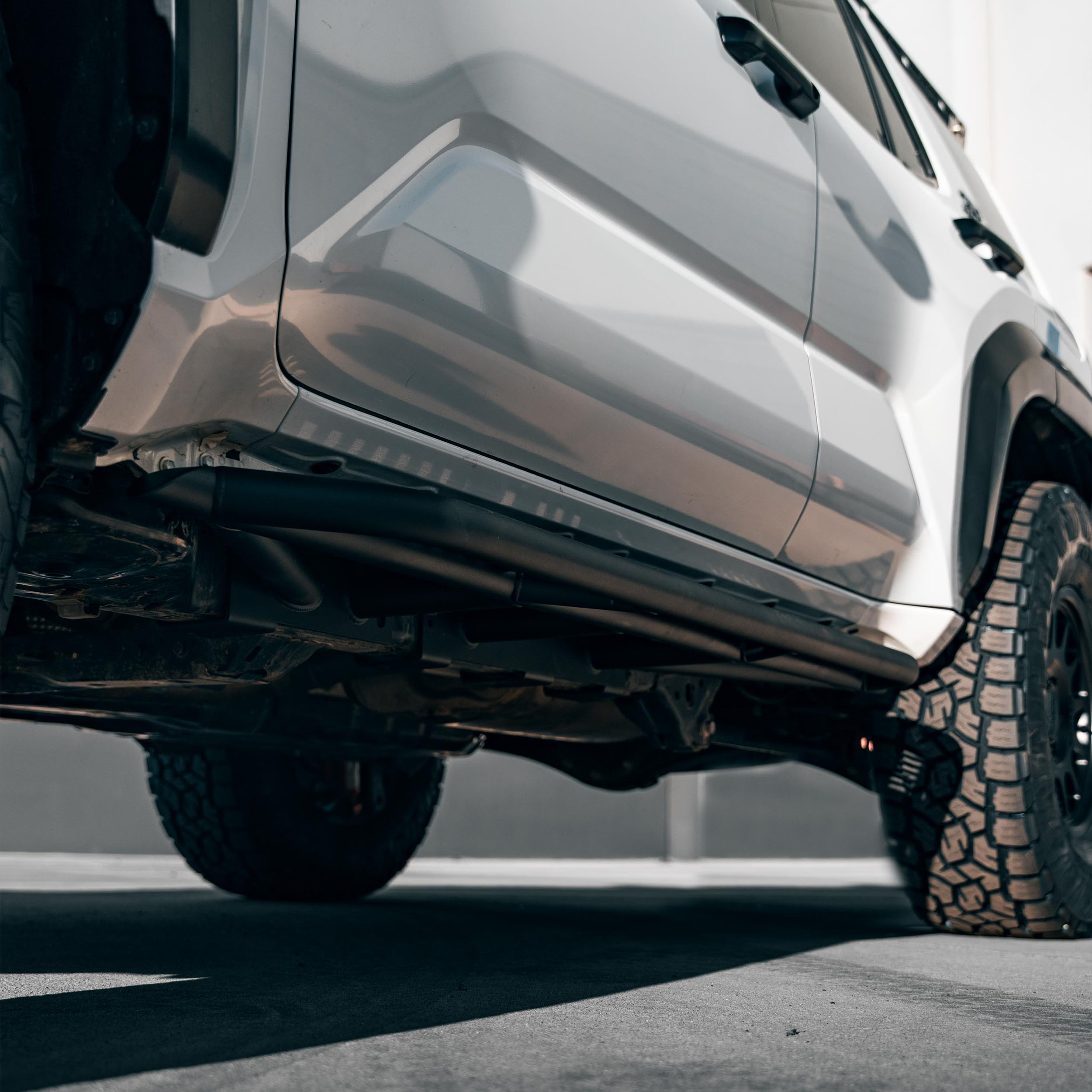 Westcott Designs rock sliders for the 2025-2026 Toyota 4runner (6th Gen). Our sliders are laser cut, hand built, and hand welded which make them some of the best on the market. Our sliders are all .120 wall tubing and offered in both *HREW and *DOM steel, in either MIG or TIG welded options. The frame plates are also laser cut out of .188 *HRPO steel and feature a true bolt on install with supplied hardware. No matter what variation you select our sliders in, they will offer you excellent protection. For ultimate protection when out on the trails, our DOM tubing option will provide you with the most robust impact resistance along with the confidence of the longest lasting and highest quality materials. We have different options for angle of approach (0 degree & 20 degree), with or without top plates and a durable BK59 black powder coat finish. We primer coat all our sliders first to prevent corrosion from forming no matter what the weather conditions they are put through.