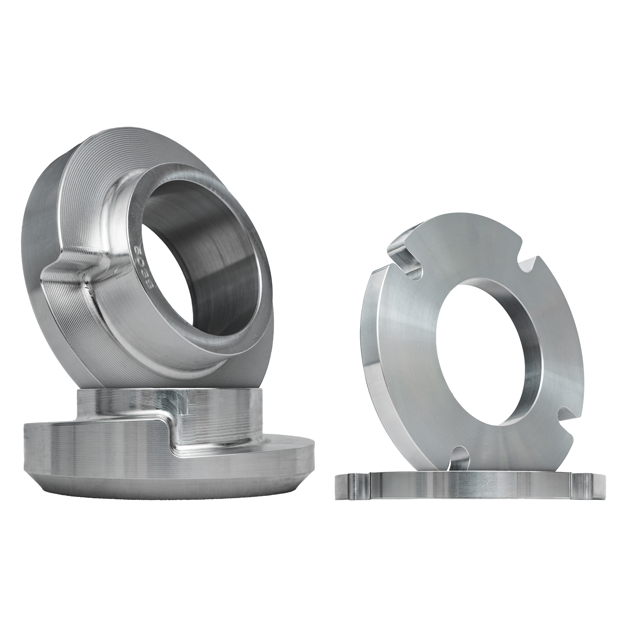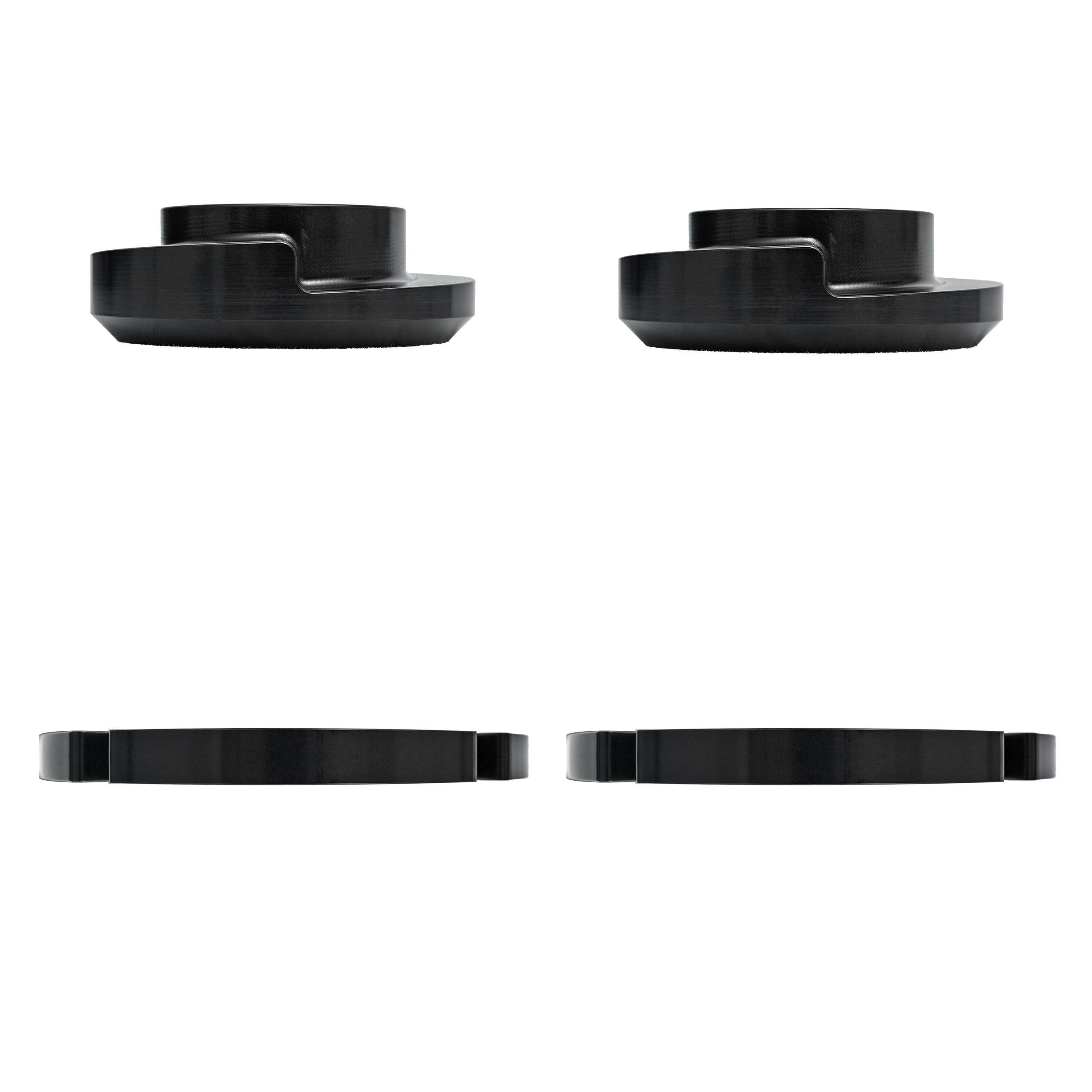 This kit features all new CNC machined components and are available in both raw aluminum and hard black anodized finishes for that true “like factory” look. This kit gives you 2.50” of lift in the front using your factory shocks and springs and includes complete hardware for an easy install. This is NOT your traditional spacer lift kit, you retain your factory ride quality, factory suspension geometry and still able to align the vehicle to factory specs after install. It does NOT require new UCA’s, and you can run up to a 35” tire with a 17×8.5+35 MM offset.
