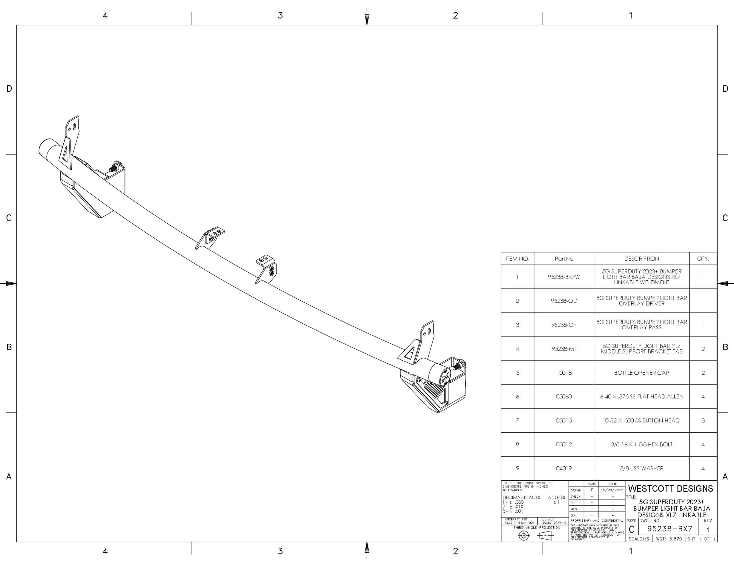 This light bar is made from the same high-quality materials we use on our rock sliders. The Bumper Light Bar was hand crafted and engineered here in-house at Westcott Designs™ in Phoenix, Arizona. They are laser cut, hand built, and hand welded which lives up to the high-quality standards we have here at Westcott Designs. Using a .120 wall tubing with DOM steel and TIG welded for the greatest strength.