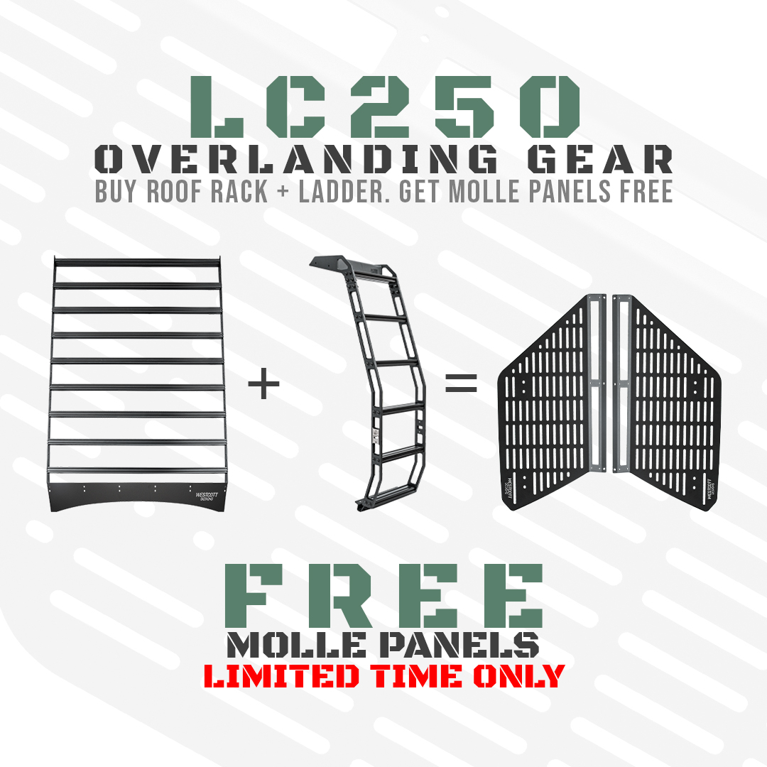 Buy a Roof Rack + Ladder for the 2025 Toyota Land Cruiser (LC250) Get a FREE set of Molle Panels paired perfectly with your new rack!