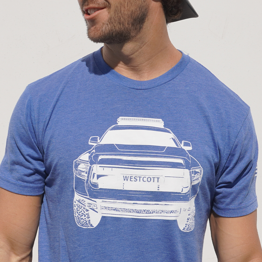 This high-quality men’s Westcott Designs t-shirt puts a refined twist on a well-loved style. This men’s logo T-Shirt is made with super soft luxurious fabric, with the Westcott Designs truck grill on the front, rack graphic on the back and US flag on the sleeve.