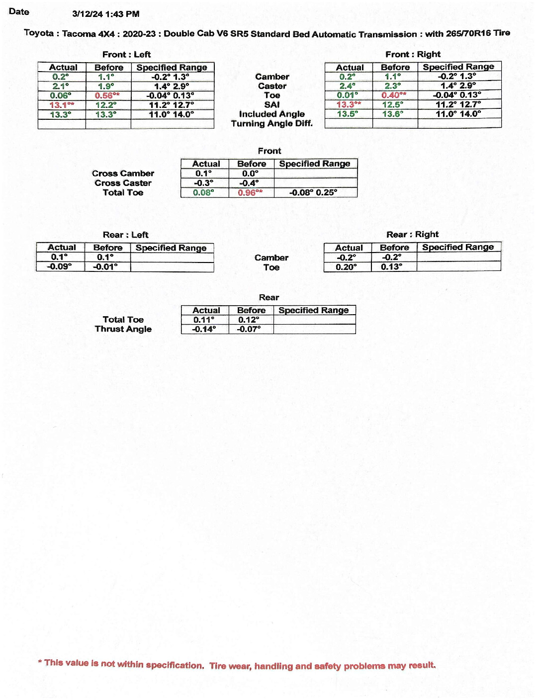 Toe: 0.1 toe out on each side (total 0.2 toe out)