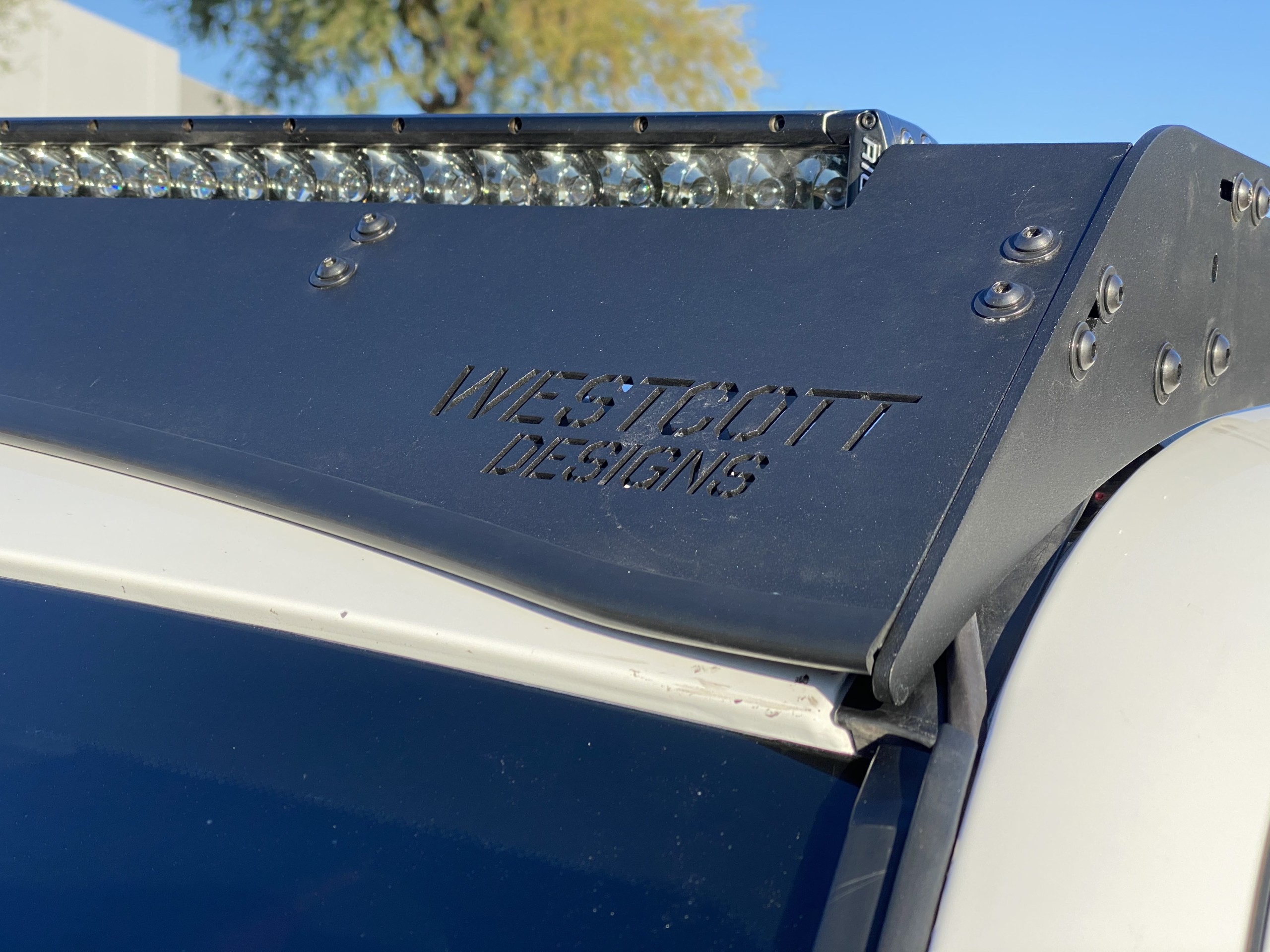 Westcott Designs 2nd & 3rd Gen Tacoma roof rack. Features extruded aluminum cross bars and your choice of front valance to accept lighting options of your choice*. We carefully designed our rack to minimize wind noise with all light configurations. Features aluminum construction for light weight with steel mounting brackets for strength and to maximize load capacity. Our rack features a low profile installed height of just 3.5?.All racks come with a set of our signature Stainless Steel Westcott Designs bottle openers to help you enjoy your favorite refreshments when out on the trails. *Lights sold separately.