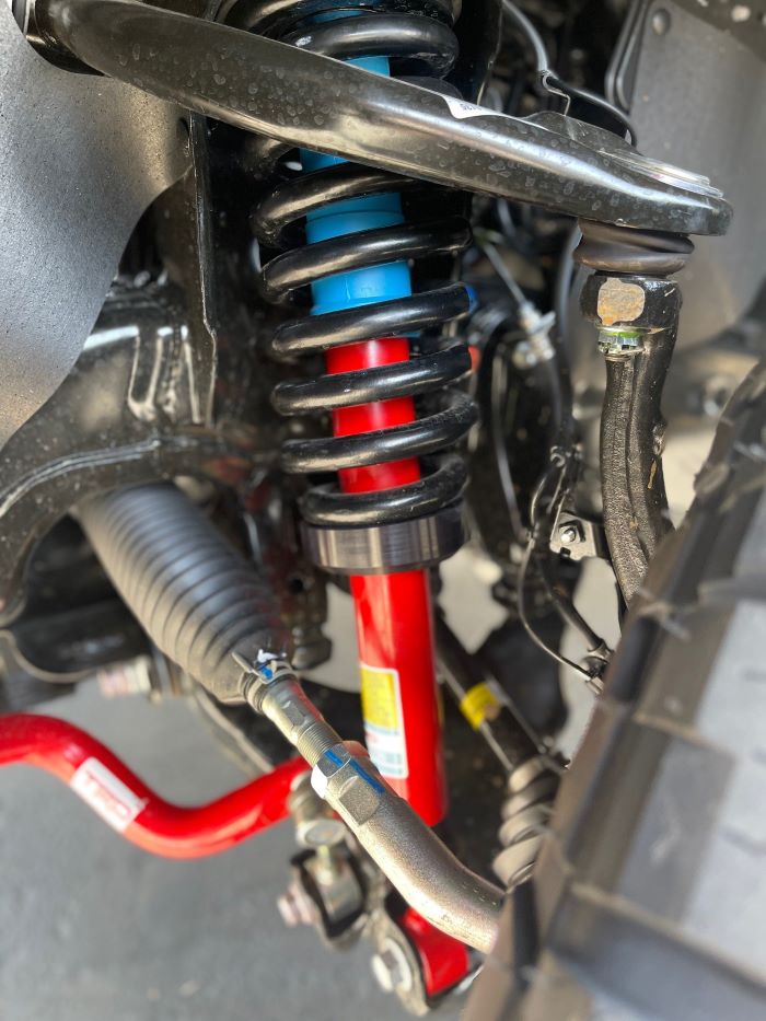 Westcott Designs Tundra TRD Sport preload collar lift kit. This kit is designed for the 2007-2021 Tundra TRD Sport with the red body Bilstein shocks from the factory. It gives you 3? of lift in the front without the need of a replacement Upper Control Arm (UCA) and 1? in the rear. After install your Tundra will sit level front to rear and you can run up to a 35″ tall tire*? It features our billet preload collars for the front and our billet rear lift block with hardware for the rear. This kit uses the preload in your spring to give you the lift that you are after, you retain your factory ride quality, it keeps your factory suspension geometry, and you can still align it to spec after install. Made in the USA.