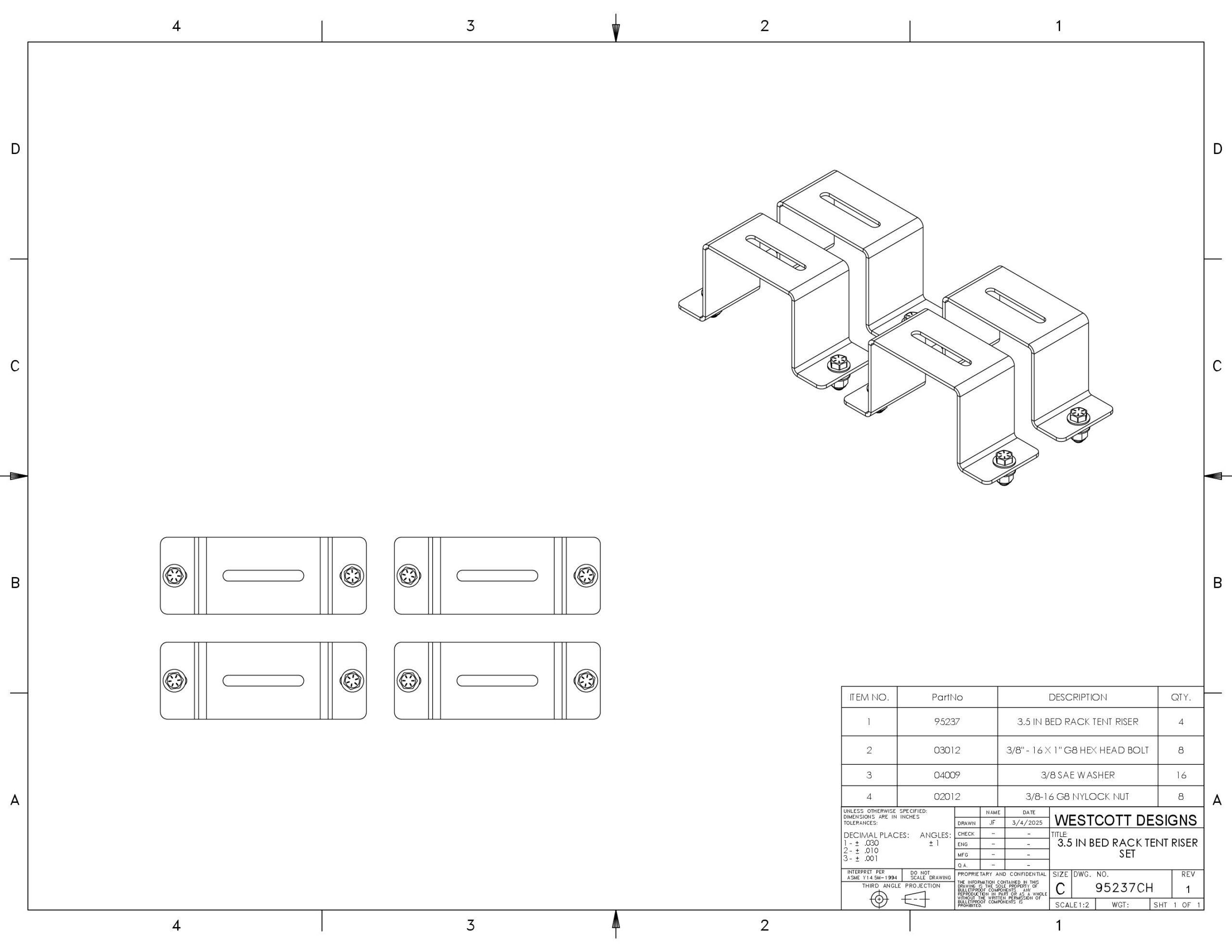 - What Comes in the Box: This comes with 4 Bed Rack Tent Riser Brackets with all the hardware to install on the Westcott Designs bed racks.